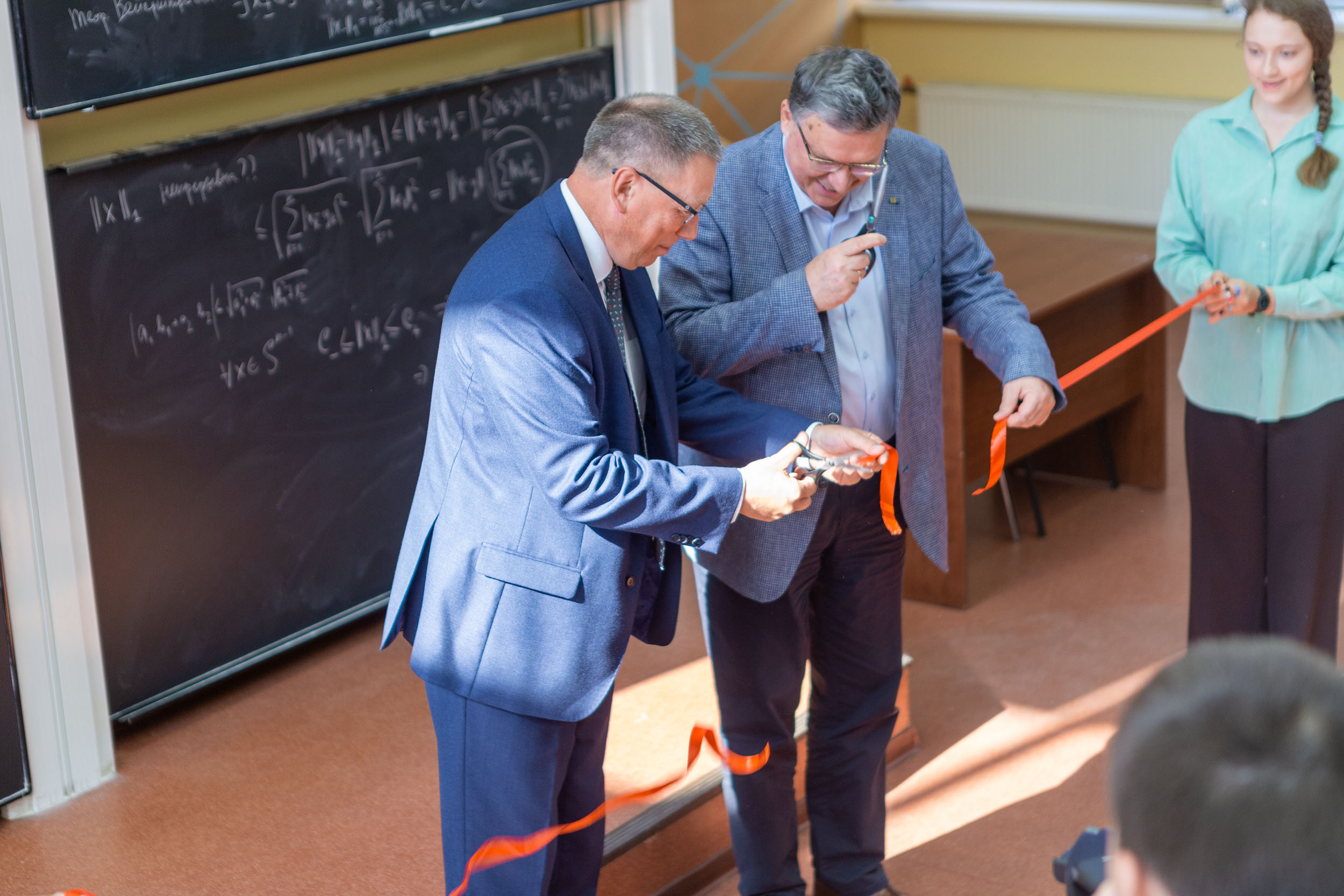 В завершении Александр Рудольфович Наумов и Сергей Викторович Иванов торжественно перерезали ленточку, ознаменовав символическое открытие аудитории академика Роберта Арнольдовича Суриса.