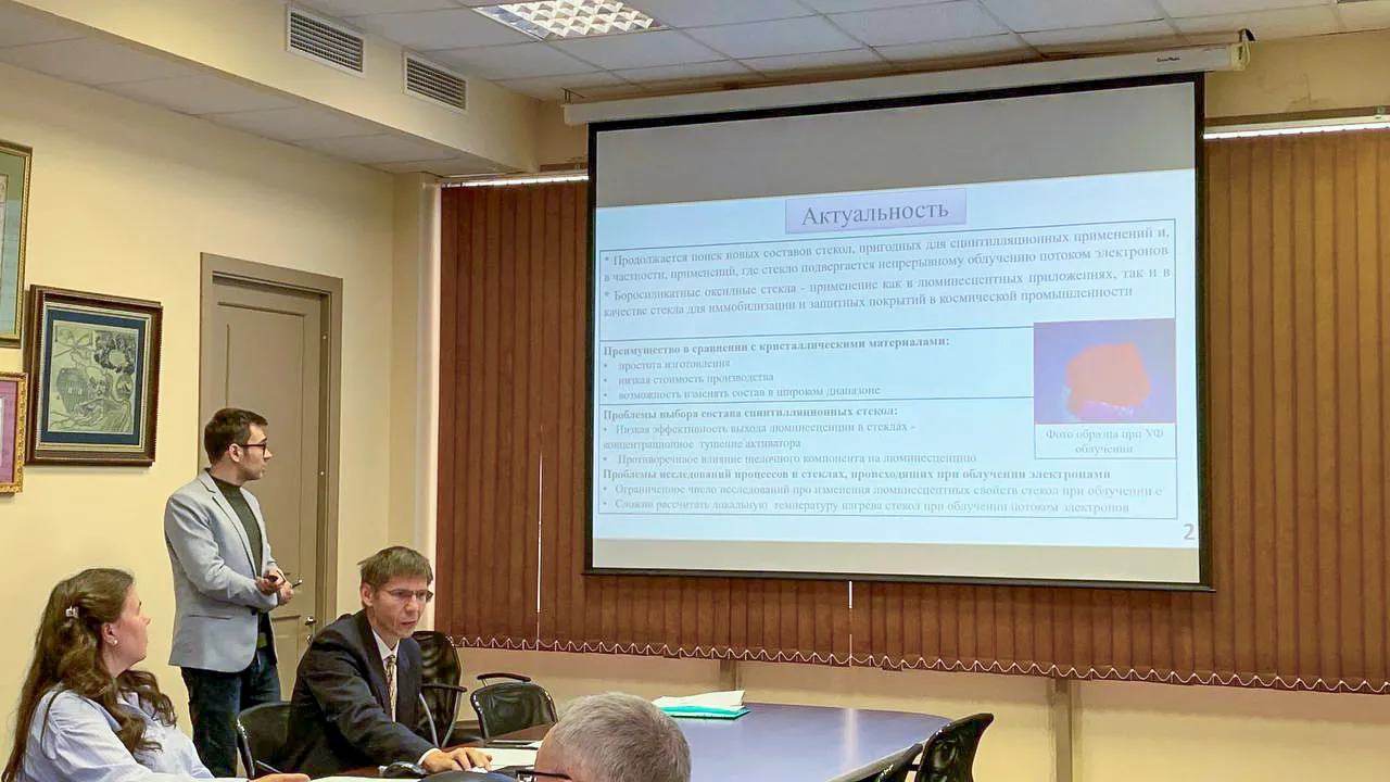 15 сентября 2025 года молодой ученый Влад Андреевич Кравец успешно защитил работу по теме «Модификация боросиликатных стекол, легированных Eu3+, электронным пучком средних энергий», выполненную в Физико-техническом институте им. А.Ф. Иоффе РАН. Решением совета ему была присуждена ученая степень кандидата физико-математических наук. Работа, выполненная по специальности «Физика конденсированного состояния», была высоко оценена экспертами за научную новизну и практическую значимость. Научным руководителем выступила кандидат физико-математических наук Екатерина Владимировна Дементьева, сопровождавшая диссертанта на всех этапах научного поиска и подготовки исследования.