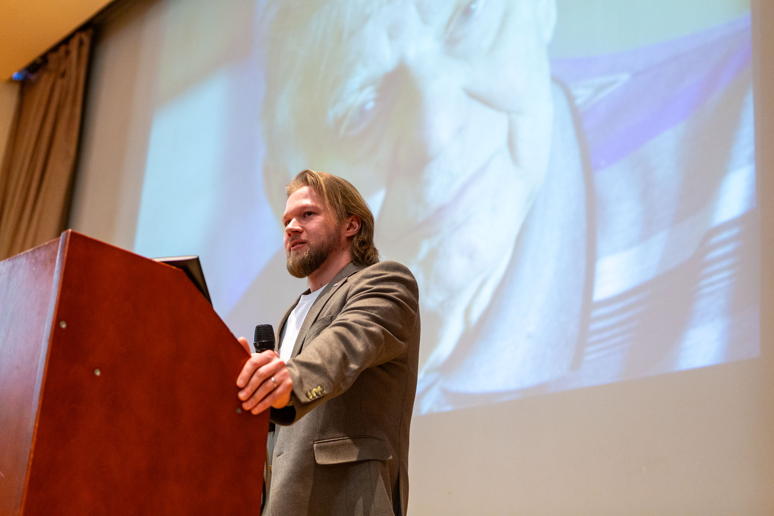 С приветственным словом к гостям, студентам и сотрудникам университета обратился ведущий, научный сотрудник, Влад Гридчин, отметив значимость дня и важность проводимого мероприятия. Церемонию продолжил ректор университета Александр Рудольфович Наумов, который подчеркнул особую роль присвоения звания Почётного доктора и представил лауреата.
